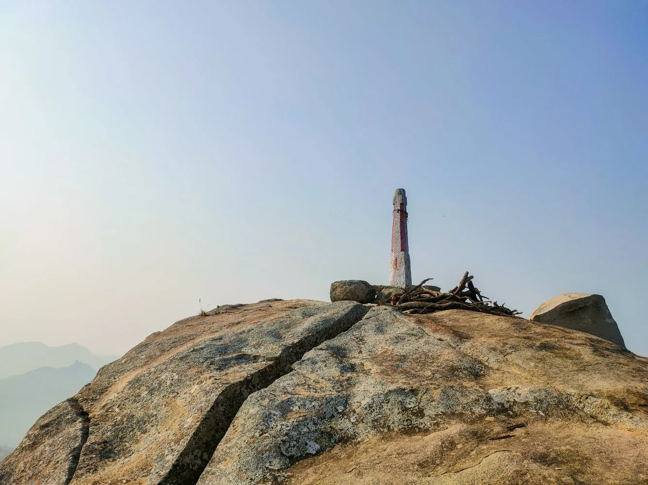 As you climb higher, the terrain gets fun — mild rock scrambling, boulder patches, and open granite slopes with amazing valley views. You’ll eventually reach a ridge that connects the two peaks, and the breeze up there? Elite. The temple at the top adds a grounding, lived-in feel, as if this place has been offering peace to people for centuries.