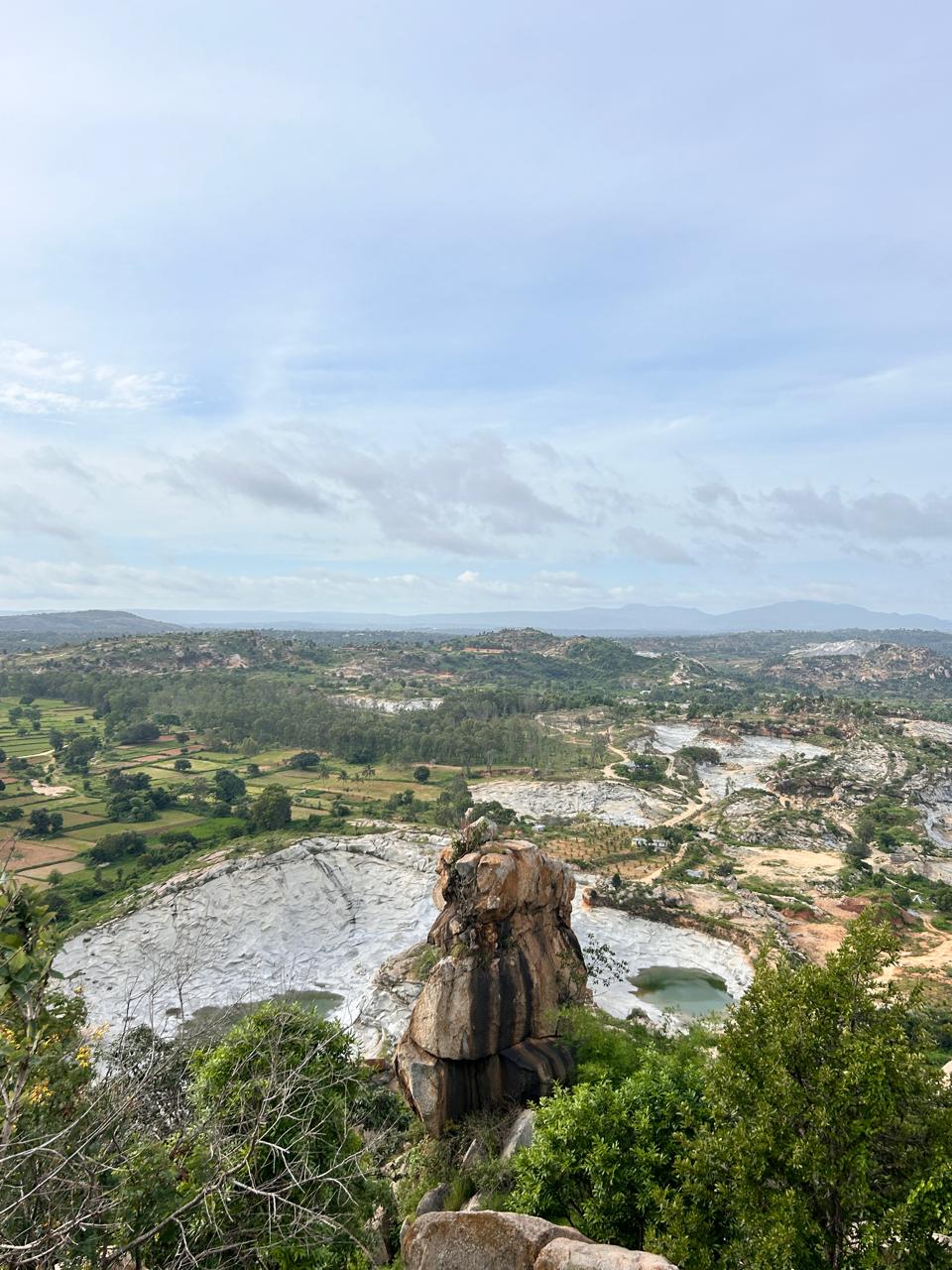 The real highlight is the view — layered ranges of the Ramanagara hills stretching across the horizon. If you go around sunset, everything becomes warm gold for about 20 minutes, and you just stand there like, “Okay yes, nature, I get it, you’re stunning.”