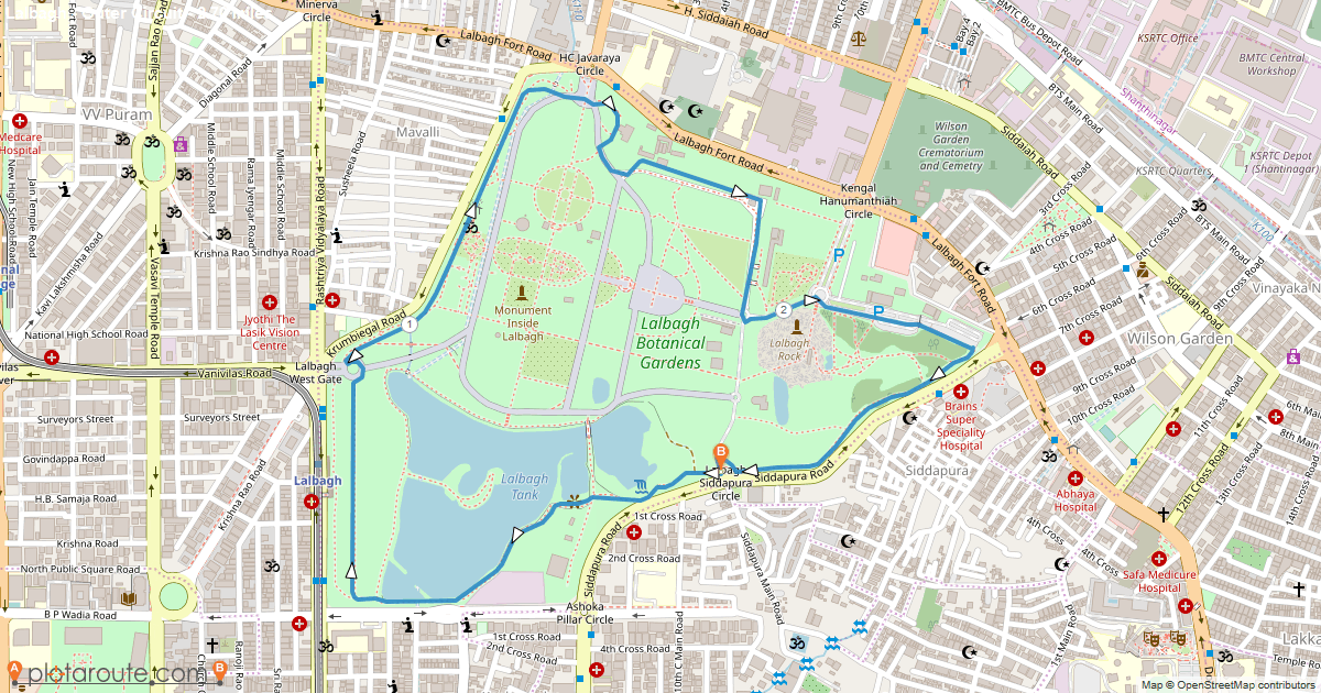 Lalbagh Botanical Garden (outer walking circuit) — Source: Plotaroute